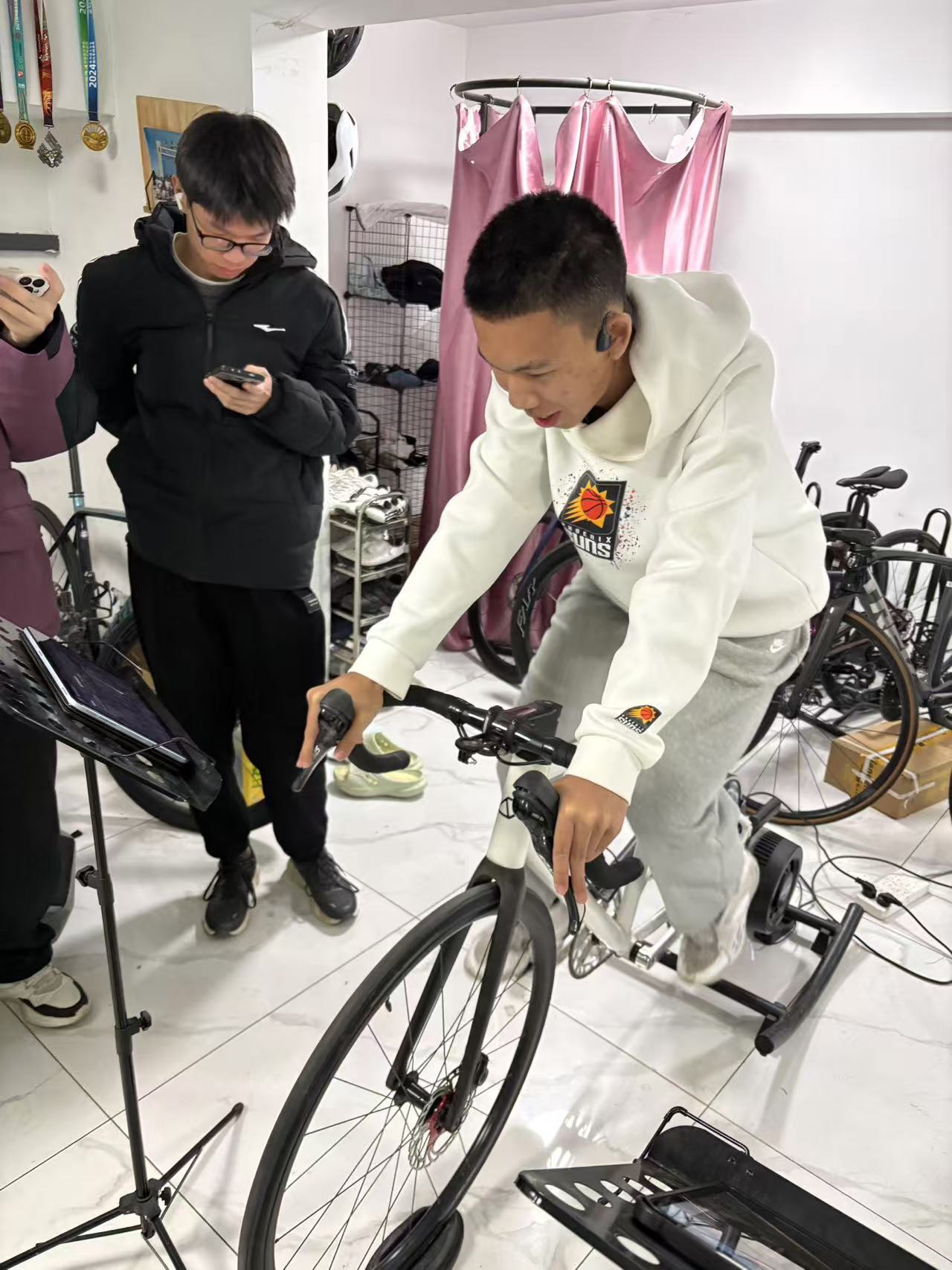 2025年12月18日晚,长安大学 forward 骑行社室内骑行台体验 & 功率比赛于12号楼骑行社活动室顺利举办。此次活动由共青团长安大学委员会主办,长安大学青年素质拓展中心、长安大学 Forward 骑行社联合进行承办,杨荔平老师担任指导老师。