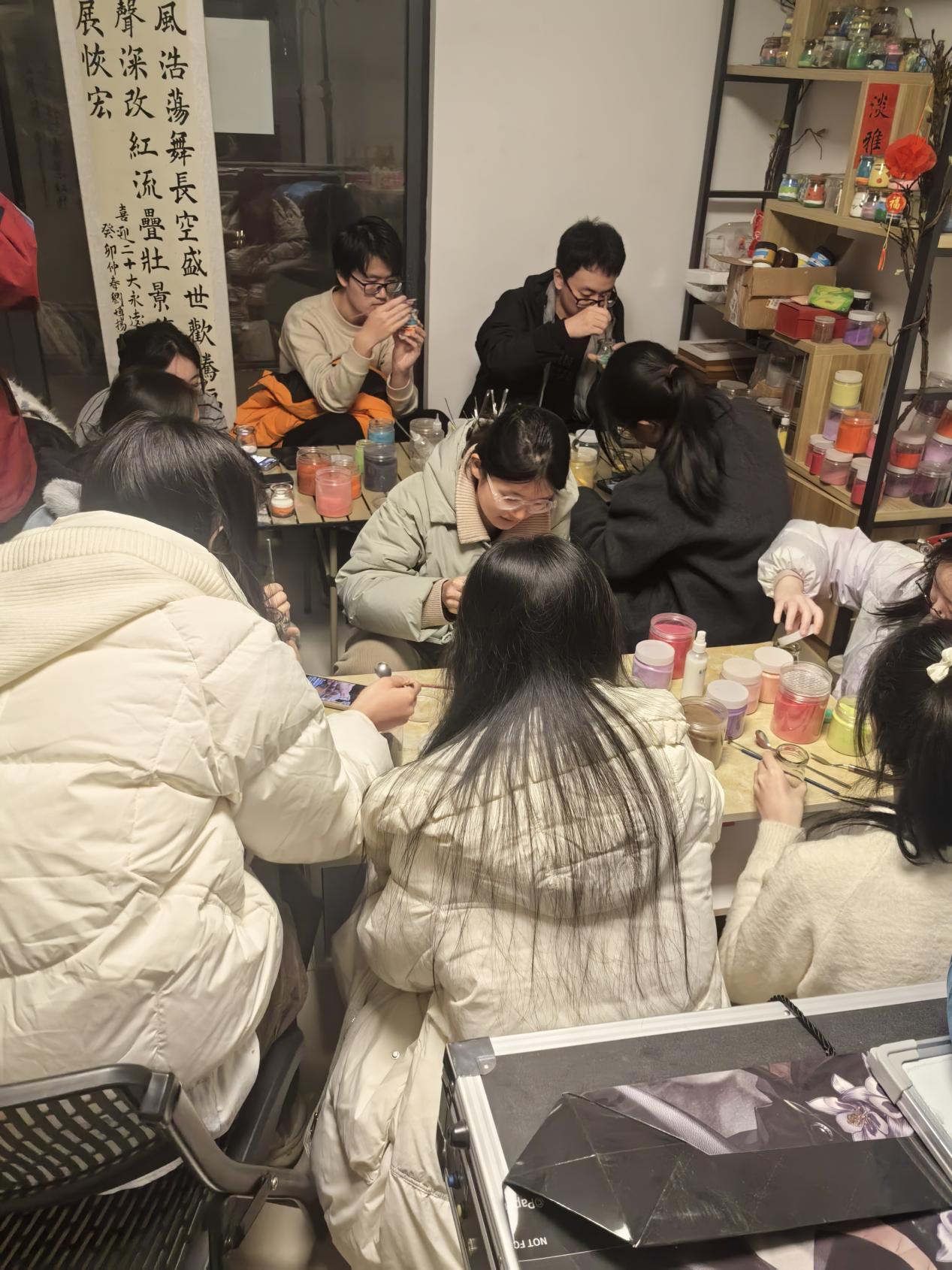 2025年12月19日晚7-9点,长安大学沙画协会组织的沙画瓶制作活动在15号楼沙画协会活动室圆满举办,此次活动由共青团长安大学委员会主办,长安大学青年素质拓展中心、长安大学沙画协会承办,郭夏茹担任指导老师。