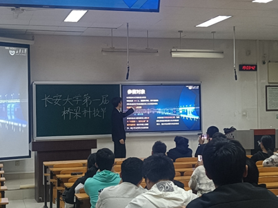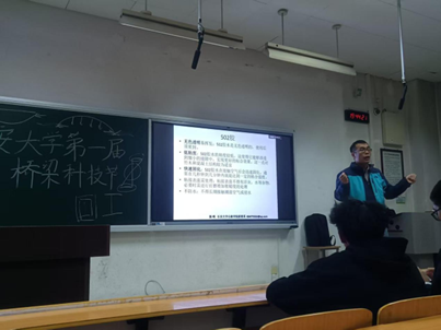 宣讲伊始,主持人对首届桥梁科技节及桥梁结构设计大赛的背景与宗旨作了简要介绍,强调了科技节系列活动在培养学生创新精神与实践能力方面的重要意义,并宣读了比赛的基本规则与流程,进一步激发了同学们的参与热情。