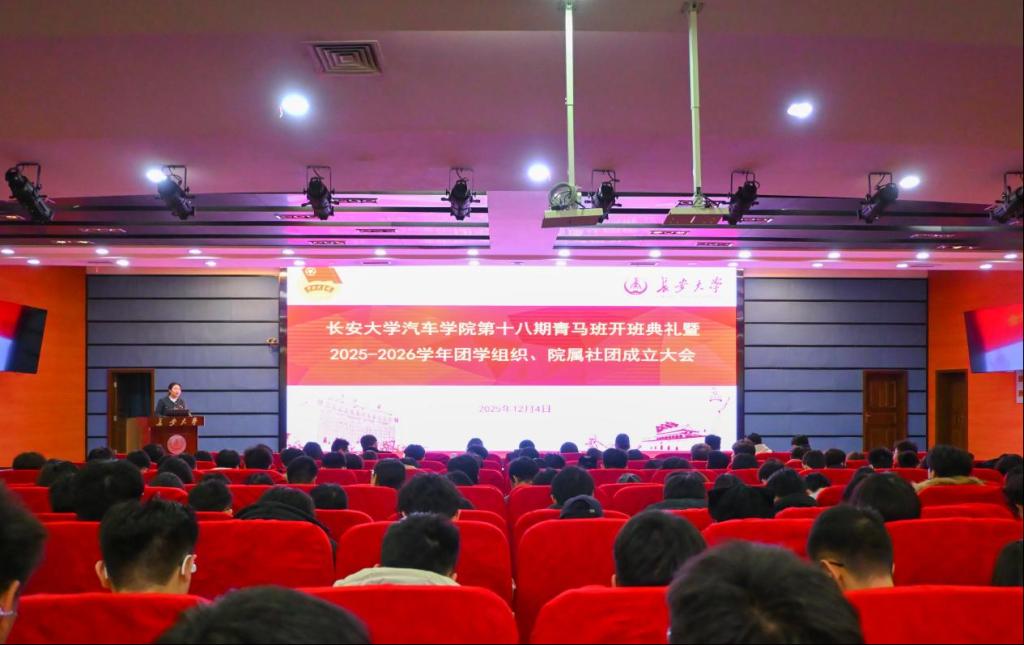12月4日晚,汽车学院第十八期青马班开班典礼暨2025-2026学年团学组织、院属社团成立大会在北辰楼会议中心二层报告厅举行。学院党委书记林贵宝,党委副书记崔莉,学生工作办公室主任郑文捷,各团学组织指导老师出席活动,学院第十八期青马班全体学员,各团学组织、院属社团成员代表参加,大会由学院团委副书记杨倩主持。