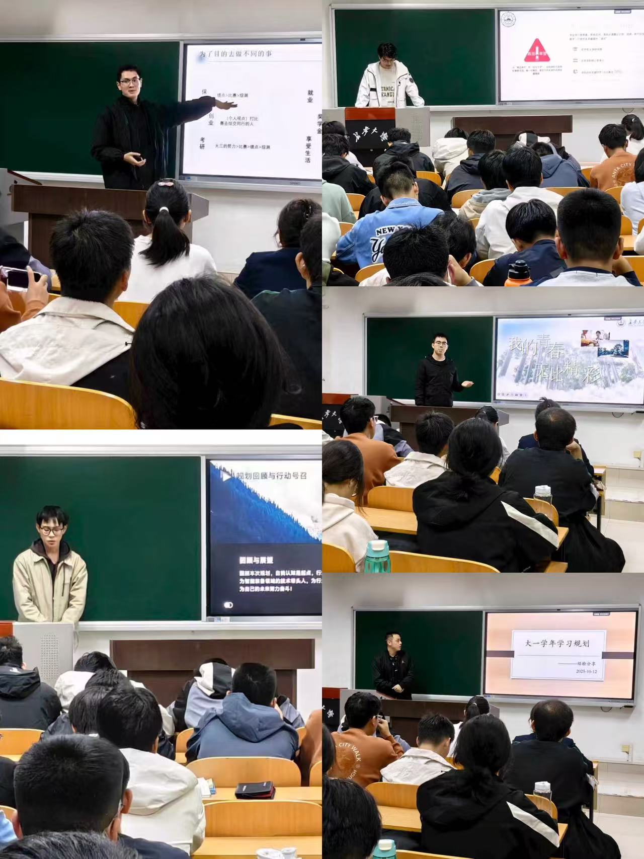 为帮助2025级新生快速适应大学生活、明确发展方向,工程机械学院学生会于10月12日晚19点举办优秀青年说——大学生涯规划专题讲座。活动特邀五位在学术竞赛、社会实践、就业创业等领域表现突出的高年级学生代表进行分享。学生会指导老师许必颖参加活动,活动由学生会学习部吴佳颖主持,学院百余名新生参与。