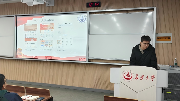 办公室负责人康彬琦聚焦“团费缴纳流程与凭证管理”进行专项指导。首先,他明确团费按季度集中收缴的周期要求,强调按时缴费对保障团员权益的重要性;其次,他分步讲解线上缴费平台操作方法,从登录平台、核对个人信息,到确认缴费金额、完成支付,全程结合实例说明,确保每位团支书理解操作流程;最后,他特别强调缴费凭证管理规范:要求截图上报时需统一填写规范表头,保证截图清晰无遮挡,且文档内缴费信息需与班级团员名单一一对应,有效避免漏缴、错缴问题,为团费管理规范化提供保障。