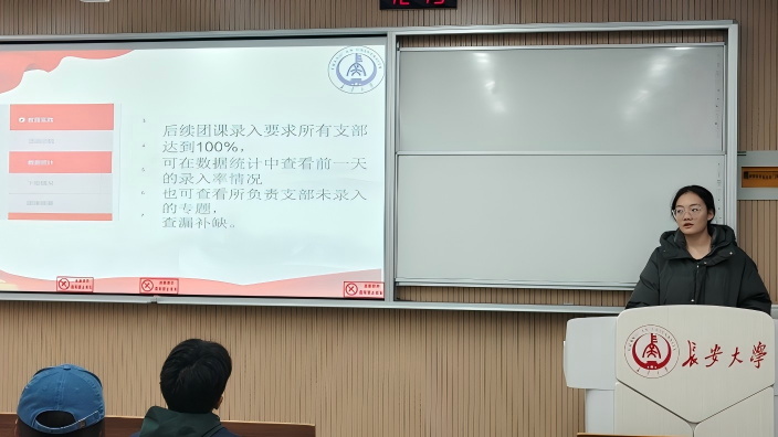 办公室负责人周婕蕊围绕“主题团课开展与系统操作”展开讲解。一方面,她明确主题团课的开展要求:划定团课每学期学习频次标准,明确“思想引领、专业融合、实践赋能”三大核心内容方向,并强调需结合班级专业特色与学生需求设计活动形式,避免“一刀切”,确保团课兼具思想性与吸引力;另一方面,她现场指导“智慧团建”系统团课录入操作,从登录系统、进入对应班级模块,到选择“团课”类别、填写参与人数与活动时间,再到简要描述活动内容、核对信息后提交,每一步均进行细致演示,帮助团支书快速掌握系统操作要点。