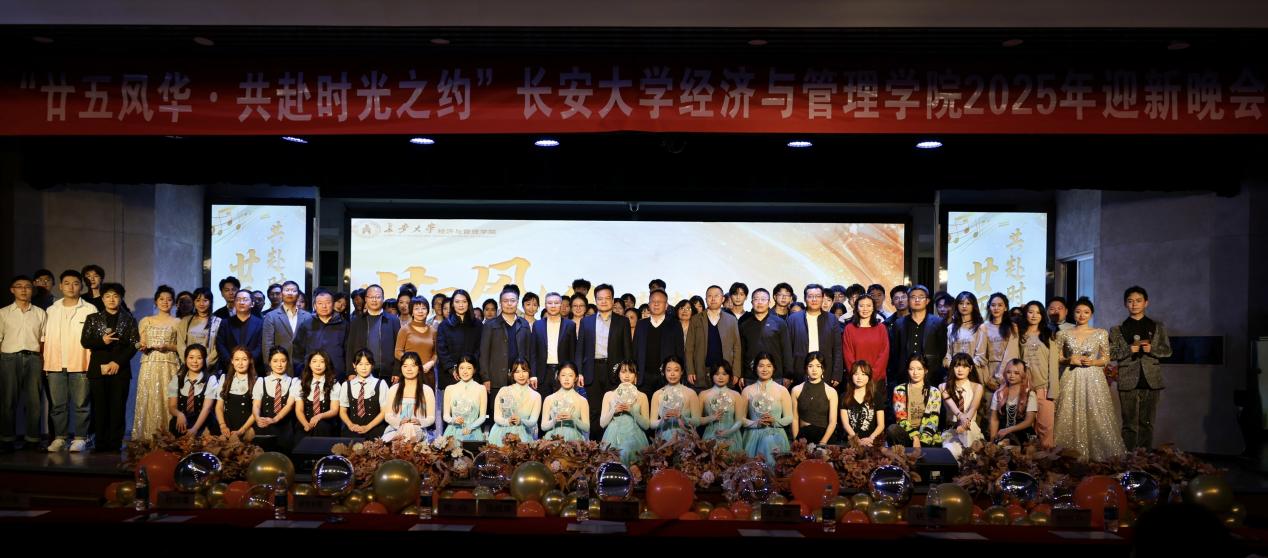 11月23日,经管学院2025年“廿五风华 共赴时光之约”迎新晚会于南校区东院雁博园顺利举办。长安大学党委常委、副校长杜强莅临晚会并致辞,党办、统战部、学工部、研究生院、研工部、校团委、南校区办、保卫处、艺术教育中心等职能部门和兄弟学院负责人出席,经管学院党政领导、系室主任、教师代表和2025级新生参加晚会。
