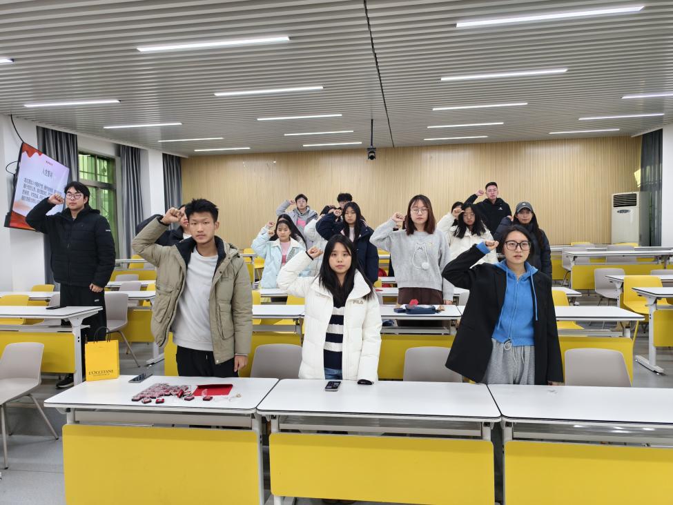 全体党员重温入党誓词,铿锵有力的誓言回荡在教室,既是对入党初心的再确认,也是对青年党员责任担当的再承诺,彰显了支部党员的坚定信仰。