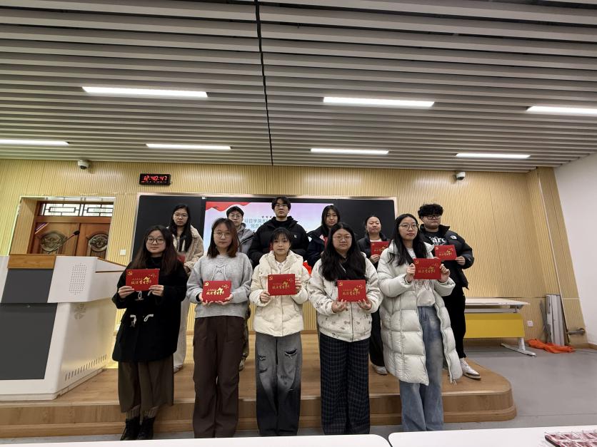 党支部为新加入党组织的预备党员赠送党徽,并为12月入党的党员发放政治生日贺卡,卡片上印着党员本人的入党日期与组织寄语,承载着党组织对青年党员的关怀与殷切期许。