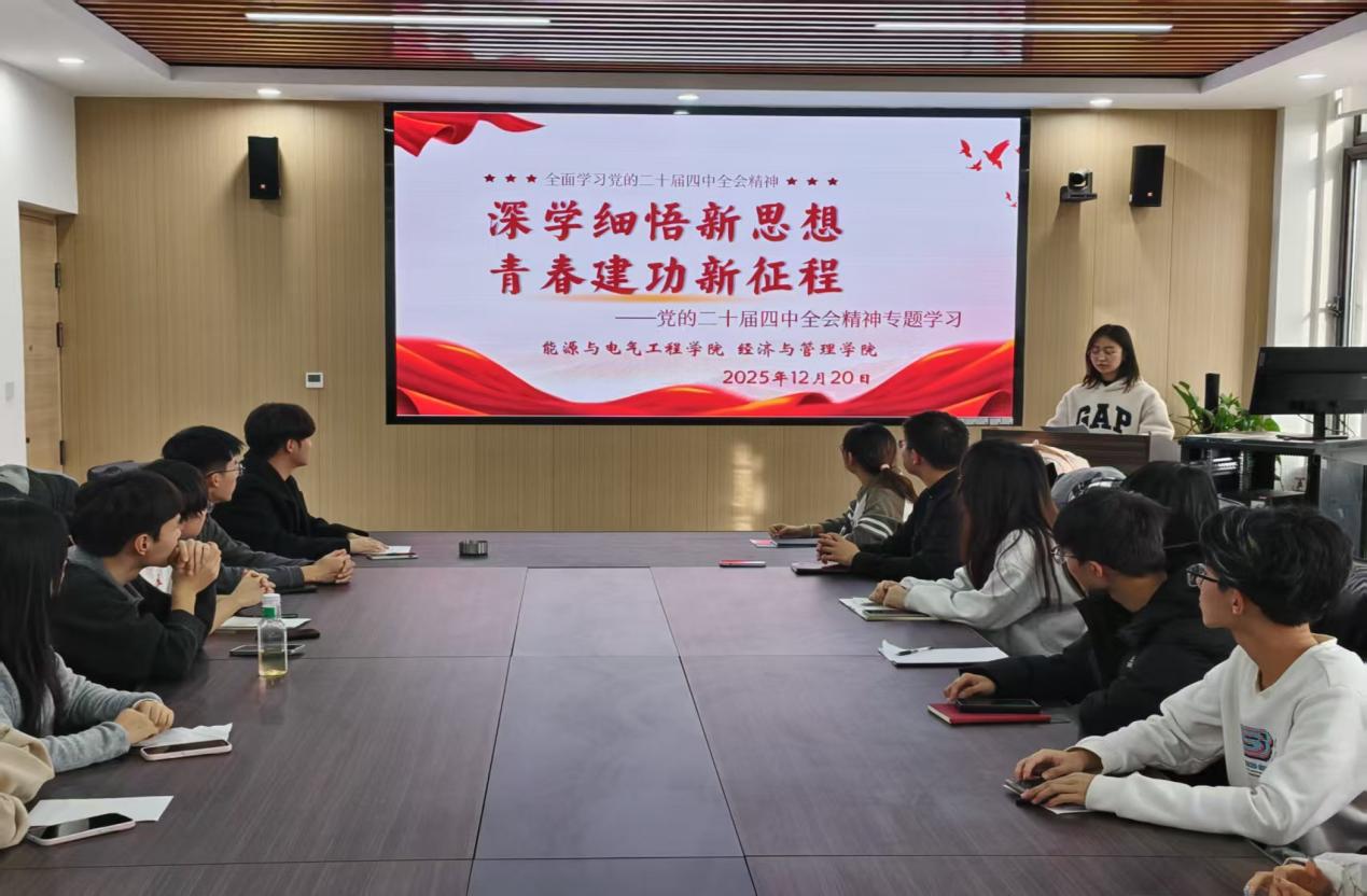 能电学院学生会主席团成员李贺岩同学领学了党的二十届四中全会精神。他结合学习体会与学生工作实际,围绕“深学细悟新思想,青春建功新征程”这一主题进行了系统解读,引导同学们将会议精神转化为推动学生会工作的强大动力。