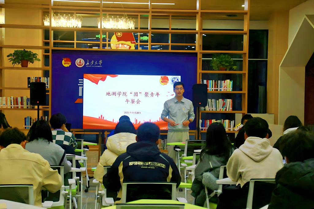 为深入学习贯彻习近平新时代中国特色社会主义思想,全面落实党的二十届四中全会精神,切实强化共青团对广大青年的思想引领,2025年11月28日,地测学院于青年会客厅举办“团聚青年午餐会”特色团课。学院团委书记杨东民,辅导员朱禹诚、阚红淼出席会议,各团学组织代表参会。