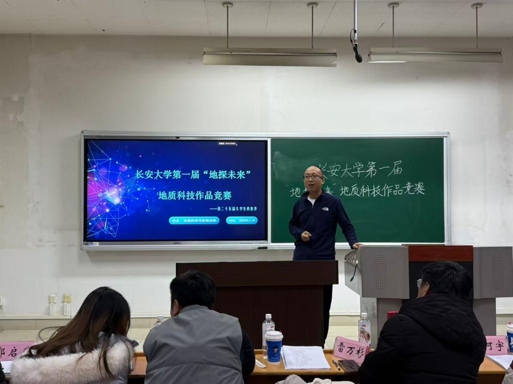 为激发学生科创热情、推动大学生实践应用能力提升,11月24日,由共青团长安大学委员会主办,共青团长安大学地球科学与资源学院委员会承办的长安大学第一届“地探未来”地质科技作品竞赛决赛在明远WM1316顺利举行。资源学院雷万杉副教授、吴佳林副教授、学院团委书记巩昌盛、科协副主席冯柯宇、大志团主席李娜霏、青年思想教育中心副主任郭启乐担任评委。大赛由冉傅丞、高思濛主持。