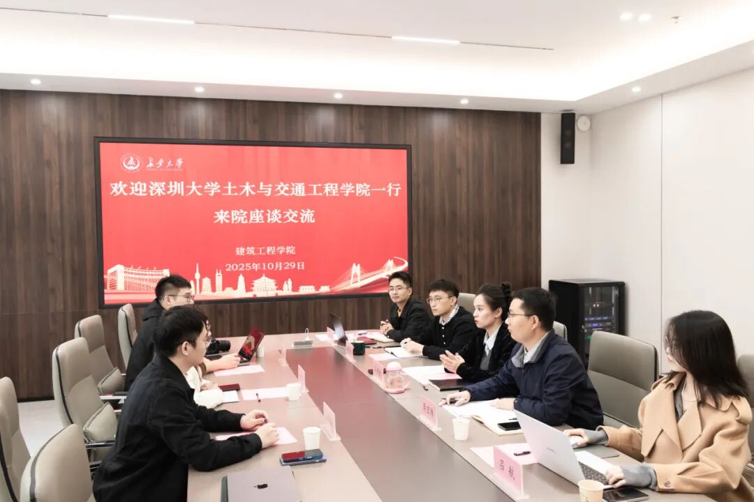 马熠航对深圳大学土木与交通工程学院一行的到访表示热烈欢迎,并围绕学院历史沿革、学科布局、师资队伍建设、党团工作及学生发展等方面进行系统介绍。她表示,希望以此次交流为契机,进一步加强两院沟通协作,共同探索新形势下土木工程领域人才培养的新路径与新机制。