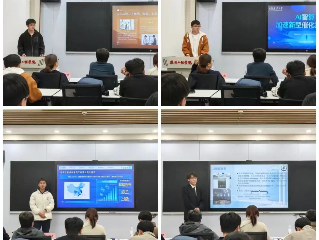 作为学院发掘创新创业新人才、培育优质项目的重要平台,本次选拔赛共吸引九支队伍参赛。展示环节中,各参赛团队围绕行业发展趋势、核心产品亮点、技术研发历程、阶段性成果及未来市场规划等关键维度,通过 PPT 演示、现场答辩的形式,全面展现了项目的创新性、可行性与商业潜力。