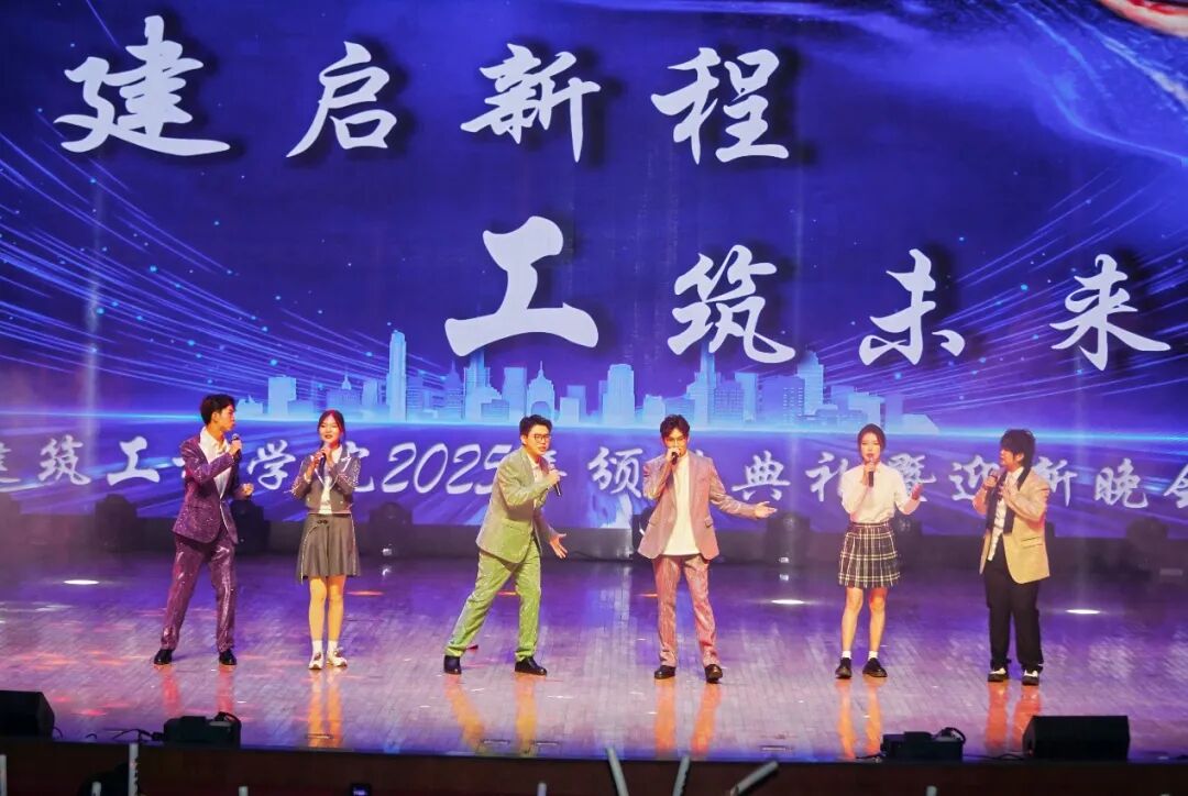 开场舞《梦想启航》以灵动舞姿点燃现场,展现新生蓬勃朝气;相声《学广播》巧妙融入校园生活,幽默诙谐,引发共鸣;歌曲串烧《在时间中回答》通过旋律演绎青春成长的心路历程;街舞《舞绘山河》以中国风编排展现传统与潮流的融合;小品《指尖上的诱惑》聚焦网络时代大学生的现实思考;民族舞《锦绣中华》以多元舞姿呈现民族团结之美;《青春之歌》《山河永念・吾辈当歌》通过朗诵与舞蹈,诠释建工青年筑梦山河的青春担当;尾声合唱《星火青春》以温暖歌声既表达不舍,更许下未来约定。