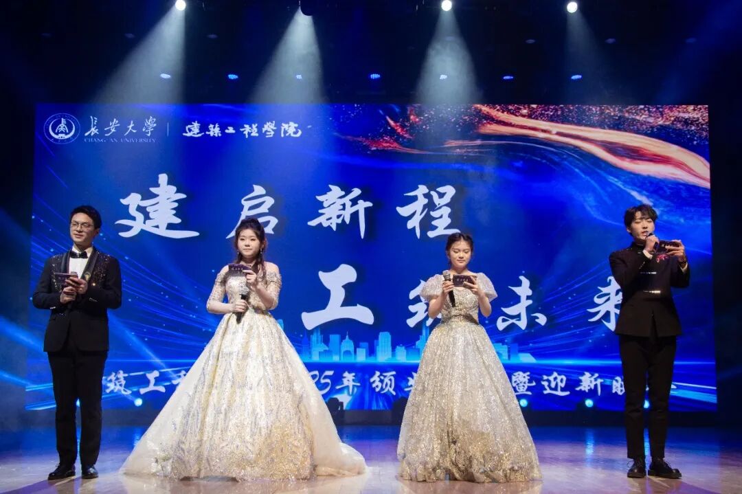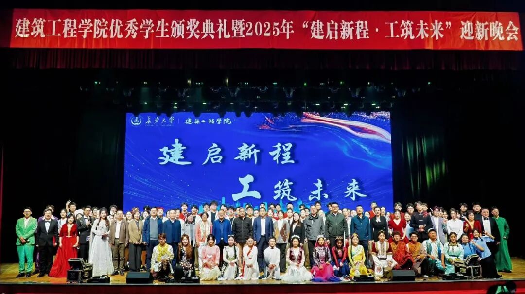 11月21日晚,建筑工程学院优秀学生颁奖典礼暨2025年“建启新程·工筑未来”迎新晚会在北校区长安文化艺术中心大礼堂举办。上海黄金枝教育发展基金会创始人黄金枝、巴州建工(集团)有限责任公司副总经理刘刚等在学院设立奖学金的嘉宾,学工部、研工部、校团委、教务处、社会合作处、后勤管理处、保卫处等学校职能部门领导及兄弟学院领导,建筑工程学院党政领导、各系室教师代表、全体新生及高年级学生代表1000余人共同参会。颁奖典礼由学院党委副书记马熠航主持。