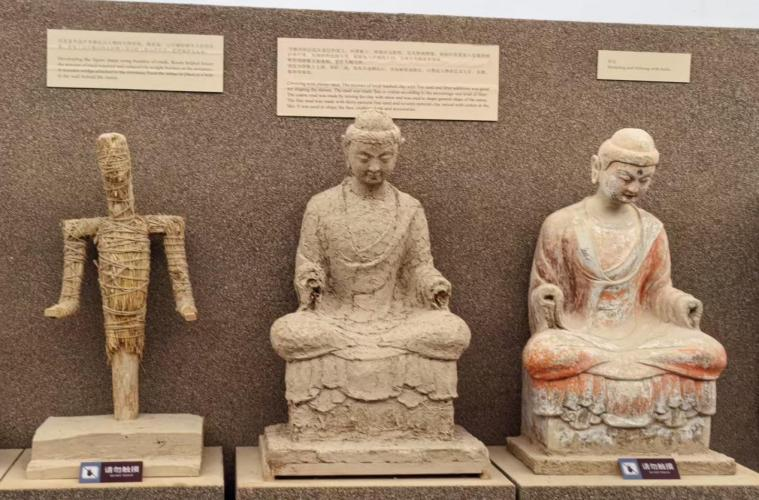(图为敦煌石窟文物保护研究陈列中心博物馆中的泥塑建造过程)