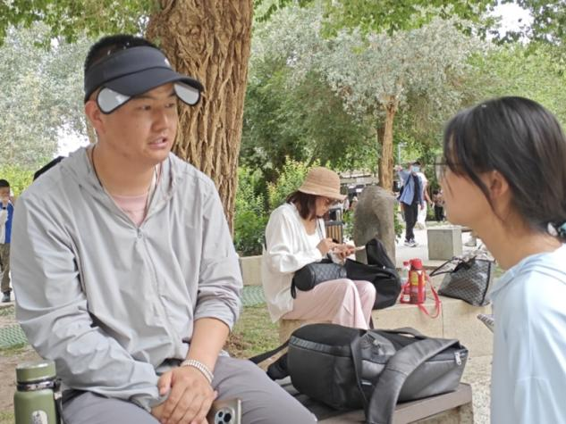 为了更深入地从游客的角度了解文物保护,团队成员采访了不同的游客视角下的莫高窟。“我在这里面还看到了一台空气净化器,保护措施做得很好,莫高窟给我相当大的震撼”。“我觉得现在科技这么发达啊,那在保护措施改进方面可以结合科技手段”,这是一位叔叔提出的建议。