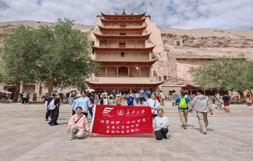 7月14日,长安大学赴甘肃“洞窟保护·水利智慧”暑期社会实践队走进莫高窟,开展“实地调研莫高窟,长久赓续文化魂”活动。实践队深入莫高窟,实地考研,通过采访、水利科普、考察水系分布等活动,以水利人的视角,用水利人的罗盘指引水文密码,调查佛像、壁画深受水分渗透而导致的酥碱化、虫害化的原因,同时向游客分享介绍怎样以个人的形式保护文物。