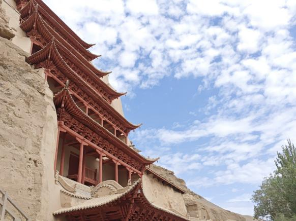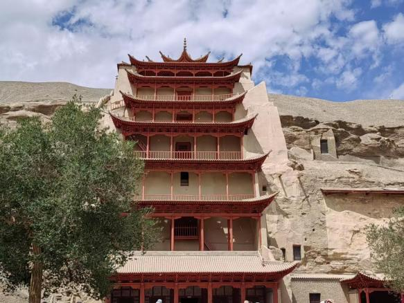 (图为长安大学学子拍摄的莫高窟九层楼)