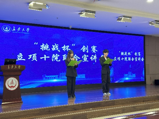 为助力学生深入了解“挑战杯”赛事规则、明晰备赛方向、助推长安大学2025年“挑战杯”大学生创业计划竞赛的顺利进行,10月11日,水环学院联合外国语学院、人文学院、电控学院、能电学院、汽车学院、理学院、机械学院、资源学院、信息学院十个学院在渭水校区长安艺术中心三楼多功能厅成功举办了“挑战杯”宣讲会。本次宣讲会由许钟毅、菲罗兰·阿里木主持,往届优秀参赛者代表及十院学生参与宣讲会。