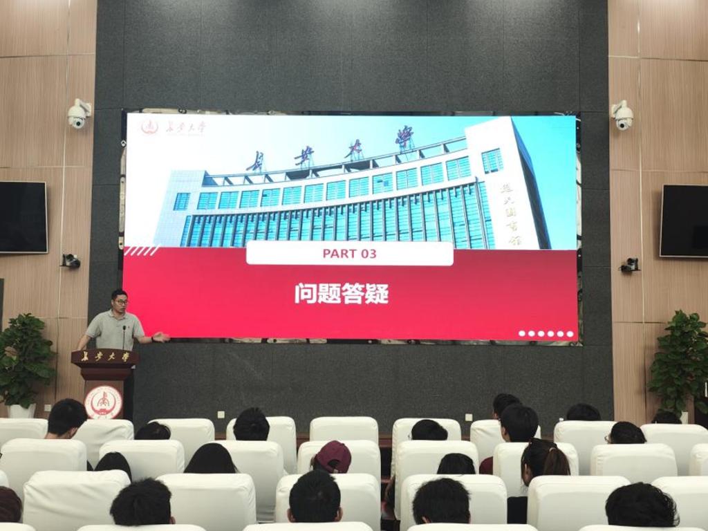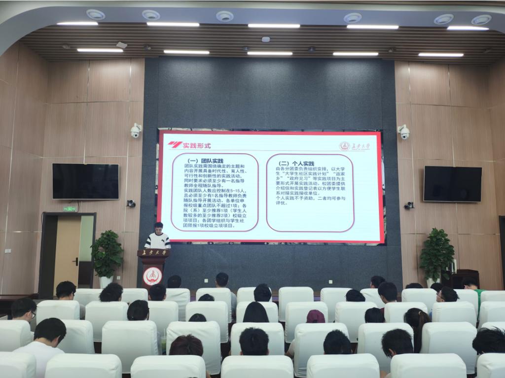 针对项目申报环节,丁泽昊同学围绕项目申报类型、新闻宣传报道、调研报告撰写等方面进行了系统讲解。他建议同学们紧密结合自身所学专业,精准选择实践项目,有效发挥专业优势,提升实践活动的深度和价值。及时与指导老师沟通交流,充分吸纳指导教师意见建议,持续优化实践方案。