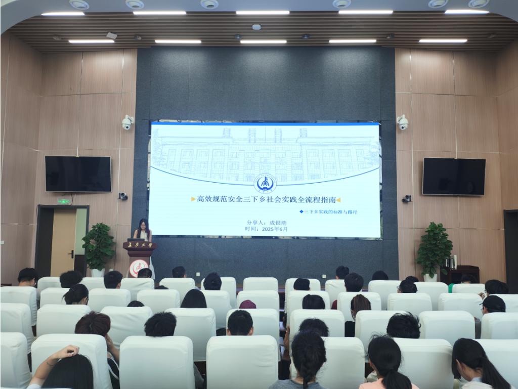 随后,往届优秀实践团队代表成银瑞、赵鑫月同学分别作社会实践经验分享。成银瑞同学立足团队实践经历,讲述了如何克服困难、解决问题,以及在实践中的成长和收获,强调要在实践中要保持积极主动的态度,勇于尝试,提升沟通交流能力。在团队实践方面,赵鑫月同学详细介绍了团队组建、策划、执行及总结等环节的经验和实用技巧。并着重强调了团队协作的关键作用,指出团结协作是高质量完成实践任务、取得优异成果的重要保障。