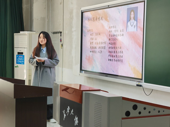最后,黄思语上台总结发言,对班委候选人寄予殷切期望,勉励大家牢记服务初心、恪尽职守,以务实作风回应同学期待、搭建起师生沟通的坚实桥梁;同时也呼吁全体学员主动配合班委工作,同心协力、携手并肩,共同营造团结向上、互助共进的集体氛围,让青马班在凝心聚力中焕发更强活力,让同学们在青马班的受到锻炼和滋养。