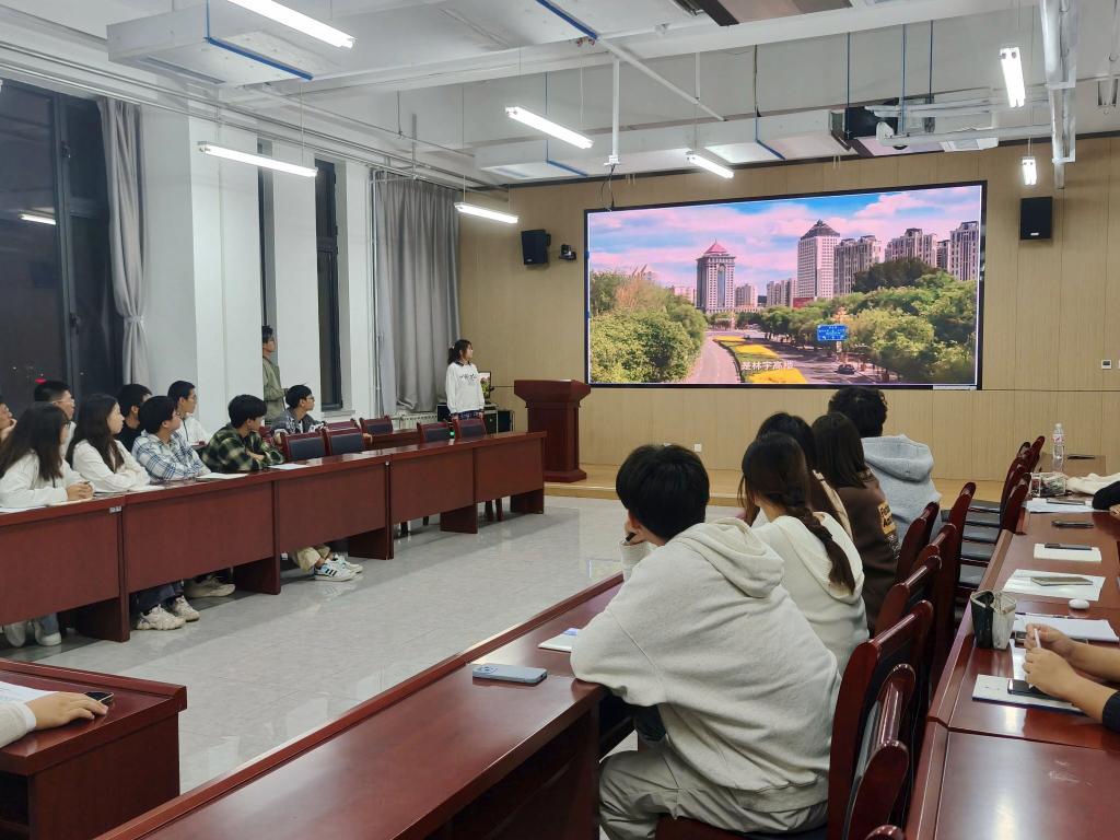 会上,暑期社会实践队队长王香惠分享了她的所见所感。身为伊金霍洛旗城市推荐官的她从当地生态产业、文化特色、民族风情和团队实践成果等方面,通过详实的案例和丰富的图片,讲述了将课堂所学应用于解决实际问题的探索过程,诠释了“实践淬炼”对于青年厚植家国情怀、提升综合素养、淬炼理想信念的重要意义,极大地激发了在场同学投身社会实践、练就过硬本领的热情。