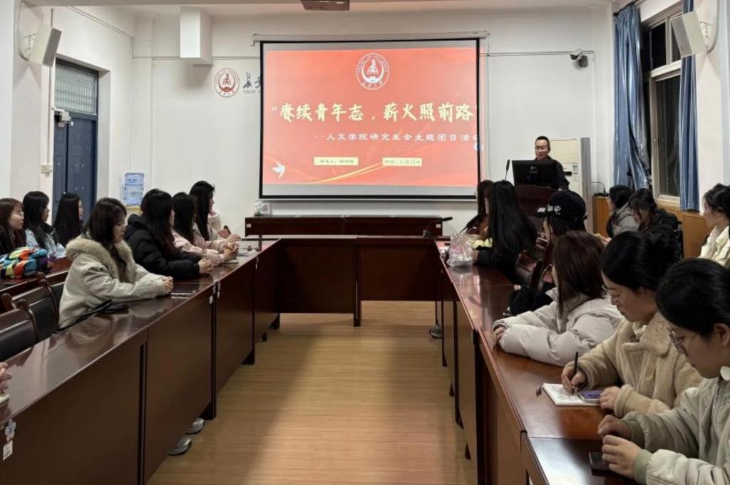 值世界青年节之际,人文学院研究生会于近日晚在基础楼428会议室举办“赓续青年志,薪火照前路”主题团日活动。本次会议由执行主席薛羽恬主讲,办公室志愿者达霖主持。