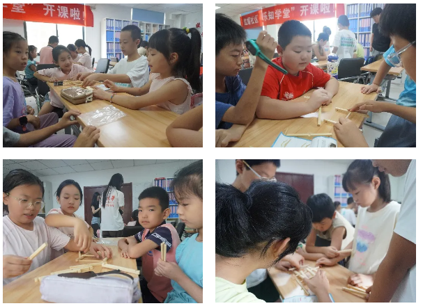 “现在,轮到大家当小小工程师啦!”认知环节刚结束,队员们便搬来一堆木条、胶水和剪刀,“这些木条就是你们的建筑材料,试着搭一座自己设计的桥吧!”