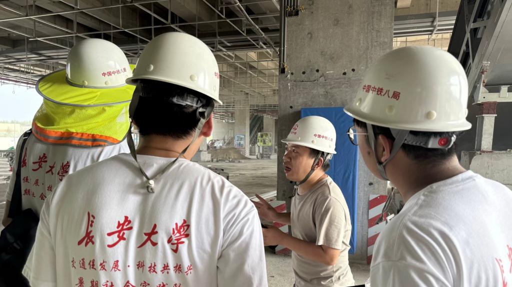 7月18日实践队赴南京江宁滨江开发区,考察滨江地铁站建设,学习南京段客流预测模型与智慧化管理经验。与江宁区交通局、中咨设计公司交流区域协同发展路径。与会人员围绕宁马城际项目背景、特色车站规划、交通流模型预测以及配套基础设施建设等情况展开交流研讨,并就健全校地合作机制,着力推进合作成果转化,助力当地交通事业高质量发展展开交流。